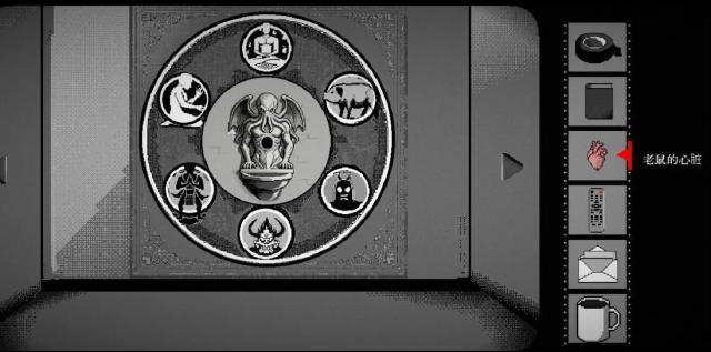 10、然后回到培养皿所在房间,点击培养皿前面的祭坛。左侧放上老鼠心脏,右侧放上人偶,唤醒克苏鲁幼崽。然后将毒药对准喂食口使用,之后培养皿玻璃破碎,游戏结束。