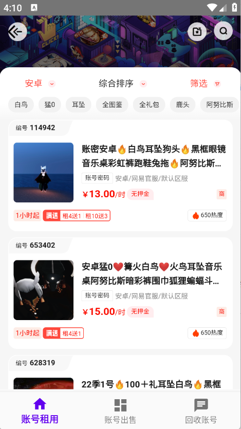 玩家也可以出租自己的游戏账号,操作简单,按照平台的申请流程上传资料,待平台审核通过之后就可以发布了,可以与玩家与在消息页面中进行沟通,促进订单成交,这里的游戏信息内容更新及时,大家的信息获取方式更加便捷。
