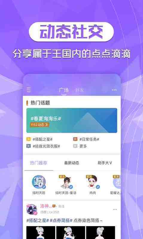 1、动态社交,分享属于王国内的点点滴滴,话题讨论、热门推荐,带你玩转整个社区。