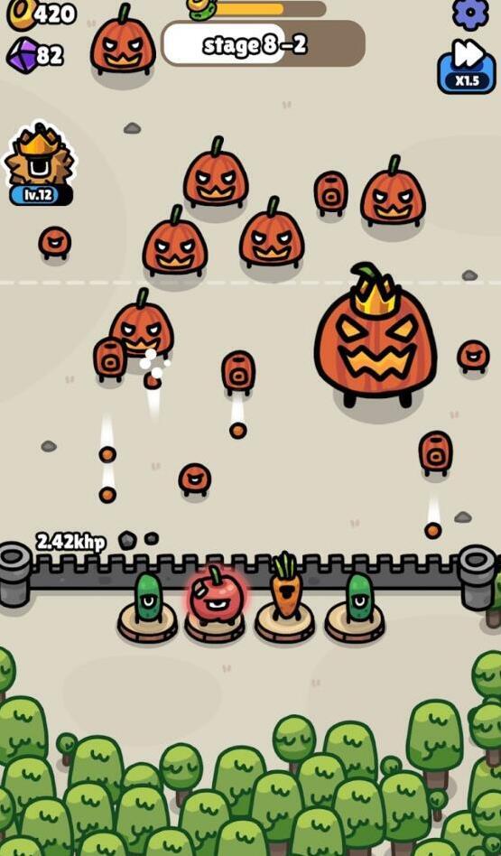 游戏的玩法很简单,上阵水果英雄守护你的城堡就可以了,这些英雄不需要玩家来手动操作,它们会自动攻击出现在范围内的敌人。游戏中的水果英雄很多,消耗金币就可以召唤,用获得的钻石解锁更多的位置来上阵更多的英雄,通过一个又一个的关卡来体验新的乐趣吧。