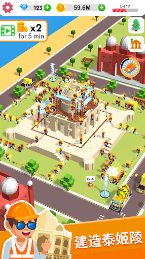 1、欢迎使用空闲的时间管理,赚钱并建立帝国的建筑大亨游戏,以提高您的业务并收集最伟大的地标性建筑!