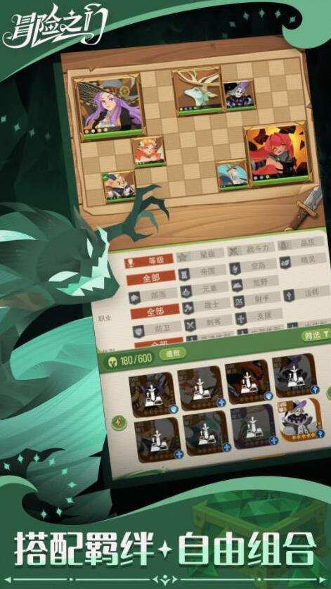 冒险之门,一款将卡牌与自走棋结合的策略游戏,玩家将召唤不同的英雄来组建自己的队伍,通过击败各种敌人与怪物来获得资源,培养你的阵容来消灭更多的敌人。游戏中的阵容类型很多,丰富的挑战会给你不同的乐趣,不断消灭更多的敌人来体验全新的冒险吧。