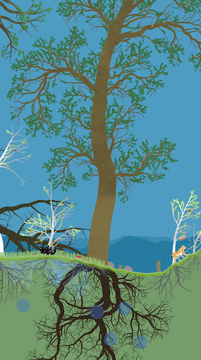 点击动物会触发不同的行为,影响森林的生态系统:驼鹿排便,为土壤施肥。田鼠啃食树根,破坏树木。狐狸会捕猎其他动物。