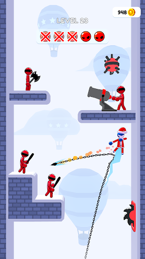 2、丰富多样的武器可以解锁使用,包括飞镖、斧子、回旋镖等等,强力的武器能够让你过关更加顺利。