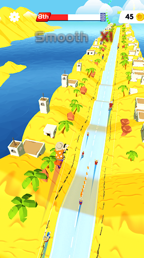 游戏中,玩家们需要通过长按屏幕来提升自行车速度,并在合适的位置松手,让后自行车能够在空中飞行,从而让你去超越一个个对手,向着冠军冲刺!你的名次越好,能够获得金币也就会越多,就能去不断的升级自己能力,参加更多刺激的比赛!