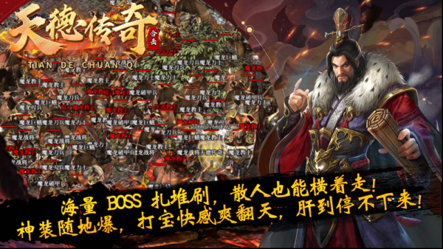 天德传奇,185三职业特色合击版本,上线即可获得自动捡物、自动回收、超大背包等丰富功能,助力玩家们轻松开荒刷怪,升级打宝两不误!游戏内一切装备全部靠打,升级无瓶颈,通关无压力,各种经典神装现世,属性颜值双绝!超多隐藏地图等着你来尽情探索,更有海量BOSS可以尽情挑战,各种极品装备、材料爆个不停,花时间人人都能到顶,散人一样逆袭!