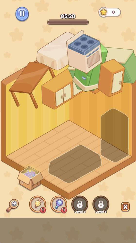 4、每关都会有不同的时间限制,在有限的时间内放置所有家具就可以通关。