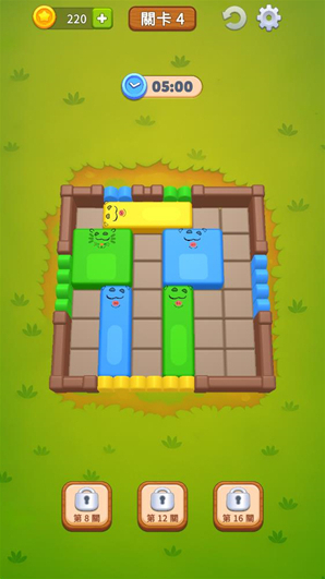 农场方块逃脱,英文名称Farm Block Escape,一款结合了华容道玩法的休闲闯关游戏,玩家需要移动各种方块来将其移出农场。在农场方块逃脱里有很多关卡可以让你去游玩,每关都需要你移出不同颜色的方块,寻找不同的方法来完成挑战,移出更多的方块体验全新的乐趣吧。