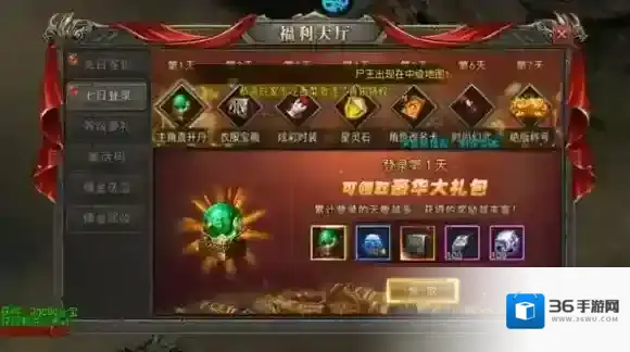 4、每日登录可领取豪华大礼包,累计登录的天数越多,获得的奖励越丰富。