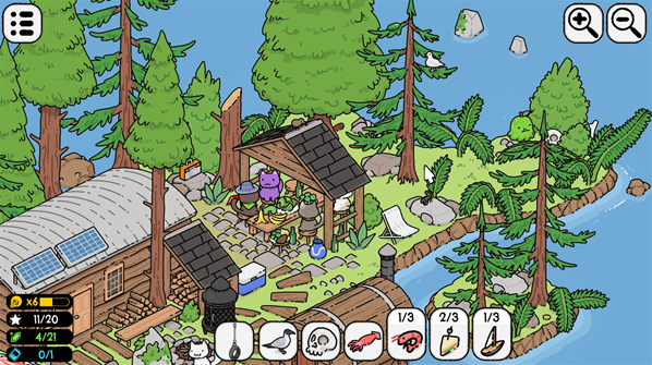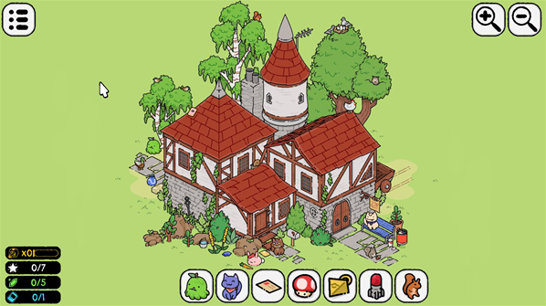 游戏中的玩法比较简单,就是寻找物品,在关卡里每关都会有不同的物品和动物需要你去寻找,通过找齐各种各样的物品来完成挑战。仔细观察关卡里的场景,多多点击屏幕来寻找隐藏的物品,使用你的火眼金睛来仔细观察,不断找到目标来完成你的挑战。