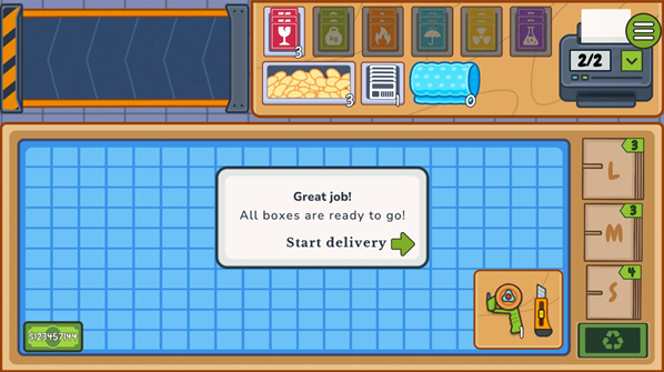 游戏中的玩法比较简单,将物品放入箱子里然后运走就可以完成任务。在游戏中有各种各样的物品需要你去打包,每天都会有不同的运输订单需要你去完成,找到对应的物品来进行打包,选择合适的箱子来装好这些物品,不断打包来体验全新的乐趣吧。