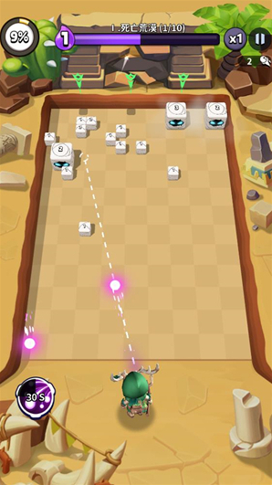 2、进入关卡后滑动屏幕来控制小球的发射角度,角色会自动发射小球进行攻击。