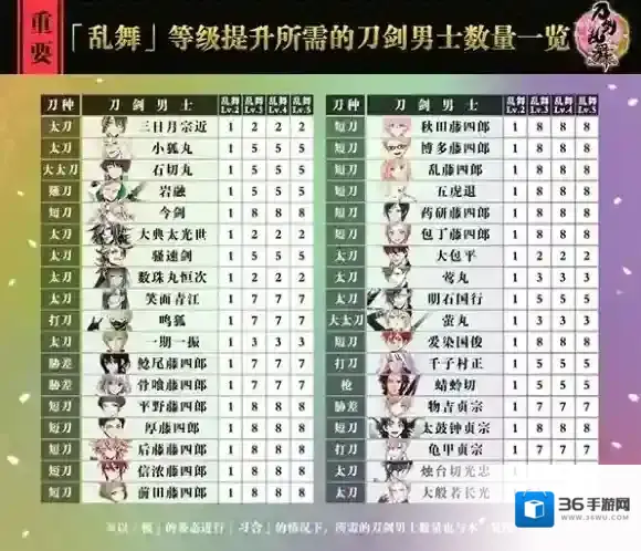 提升乱舞等级所需的刀剑男士的数量,取决于刀剑男士「极」化前的稀有度。