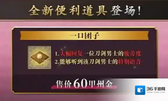 本次活动结束后,仍可在万屋购买一口团子,依旧可以使用道具一口团子恢复刀剑男士疲劳值,并听到特殊语音。