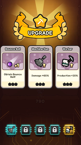 2、机器两侧的小人会自动采矿来获得经验,提升等级后可以获得卡牌提升能力。