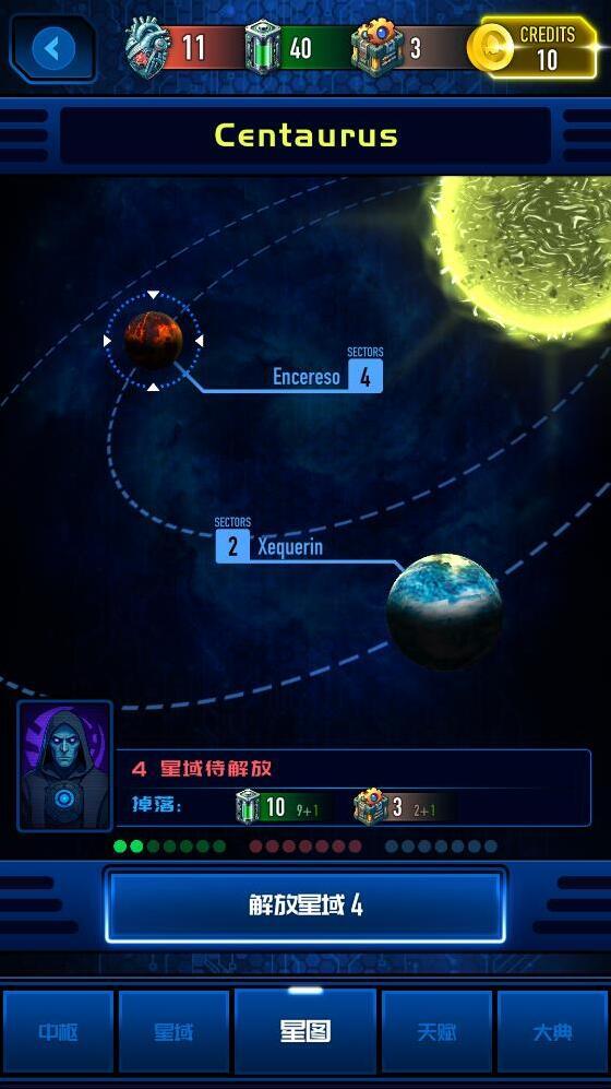 6、当你解放一个星球时会获得金币,金币可以在中枢里购买不同的模块来强化你的战舰。