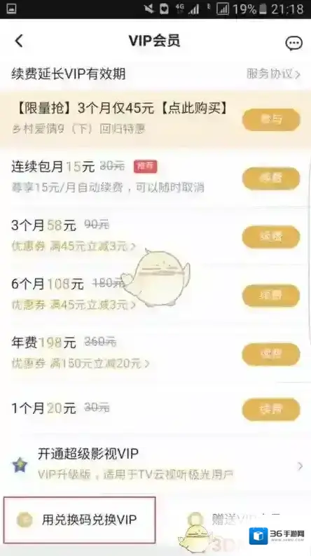 2、往下拉页面,找到“用兑换码兑换VIP”;