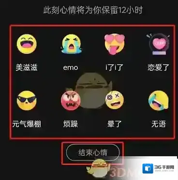 2、然后点击确定。 3、接着在底部选择一个心情。 4、想切换别的心情或者关闭心情,点击换个心情。 5、最后点击其他心情表情,即可切换。点击结束心情即可关闭心情显示。 本文内容来源于互联网,如有侵权请联系删除。2025-08-03 -