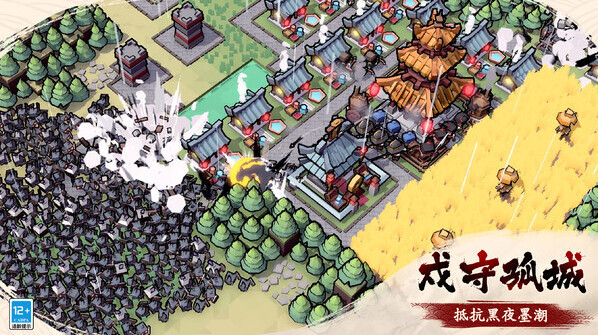 1、采用数字水墨绘画技术,还原传统山水画 勾、皴、点、染 的笔墨技法,城池楼宇、山水林木、士兵敌军均以水墨笔触呈现,搭配散点透视的场景设计,营造出 如入古画 的沉浸式视觉体验。墨水方块造型的敌军设计兼具趣味与国风辨识度,爆笑方言配音点缀其中,让严肃的守城题材更添 幽墨 韵味,风格自成一派。