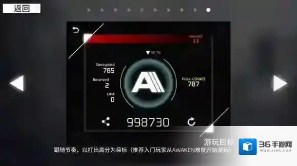 跟随节奏,以打出高分为目标(推荐入门玩家从AWAKEN难度开始游玩)