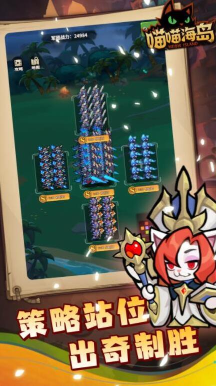 喵喵海岛,一款主打放置轻松和卡牌养成的策略游戏,玩家将指挥不同的猫咪士兵来击败对手赢得胜利。在游戏中有不同种族的兵种等你去选择,丰富的猫咪士兵可以让你自由选择来组建战队,丰富的怪物boss将等你去讨伐消灭,一边战斗一边修复建筑建设你的家园,不断征战来击败所有敌人保护你的家园。