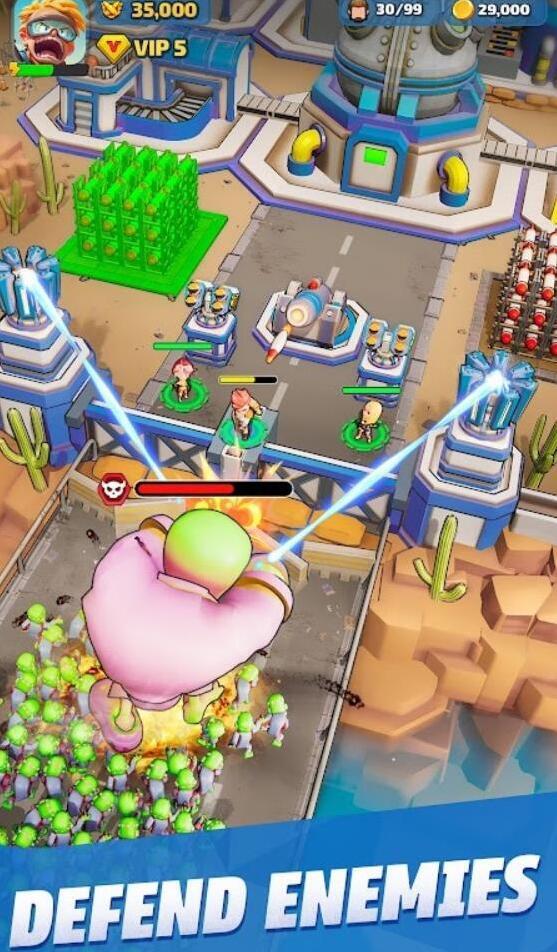 你将作为一名指挥官来指挥自己的部队抵挡僵尸的进攻,通过建设不同的防御来击退敌人,完成不同的挑战任务来升级你的科技水平,解锁更强力的武器增强你的实力,不断在一场场的战斗获胜来消灭僵尸保护基地。
