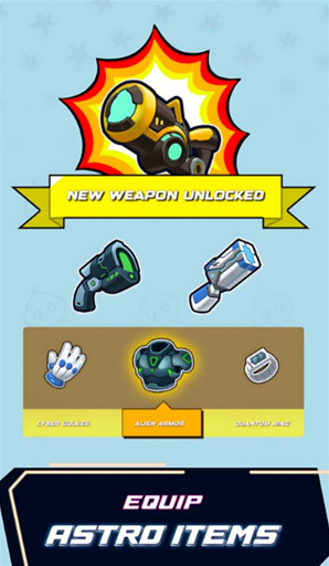 你将作为一名英雄来对抗各种邪恶的外星人,通过前往不同的星球来和邪恶的外星人战斗,使用强力的未来武器击退一波接着一波的敌人,收集不同的能量卡牌来解锁不同的技能,组合不同的卡牌释放强大的能量,不断和各种敌人战斗来体验新的乐趣。