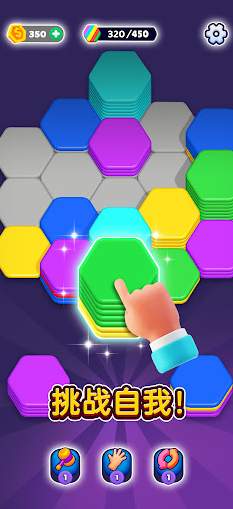 2、点击方块即可让它堆叠到同色的六边形上。