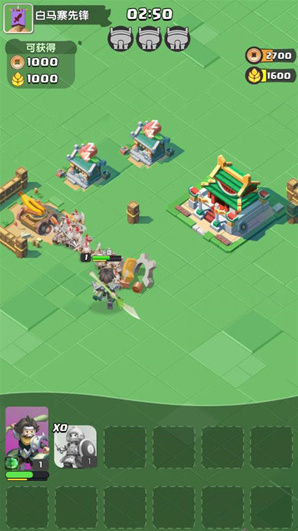 3、进入关卡后点击屏幕来释放你的武将和小兵,他们会自动攻击敌方建筑来获得资源。