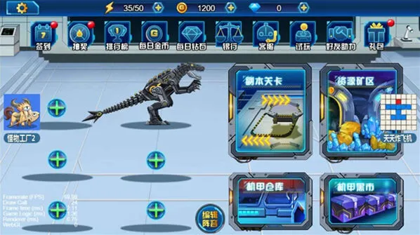 进入游戏点击机甲仓库为你的恐龙进行武装