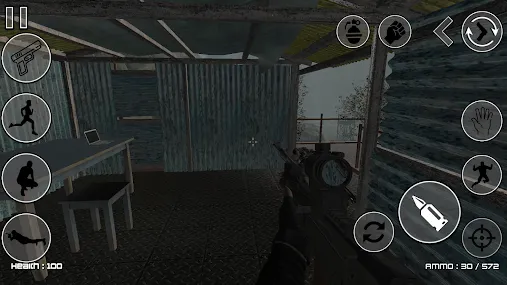 1、游戏中,拖动左侧屏幕控制移动,左侧还有各种行动指令,如奔跑、蹲伏、匍匐。