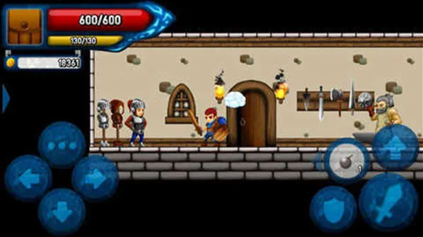 在图下的内容中显示着人物的活动详情,其中左侧控制着角色的移动走向,而向上的按钮则是与NPC的交互功能,右侧是控制角色的攻击、防御和跳跃。双击左右前进可以令角色进行翻滚,双击跳跃可以让角色实现二次跳跃。(记不住没关系,游戏内会有详细的新手教程指导)