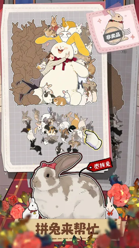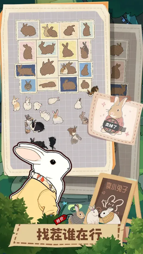 3、游戏中出现“拼兔来帮忙”任务,玩家需从众多兔子图案中找出指定角色,如贵族兔等,完成匹配任务以推进剧情。