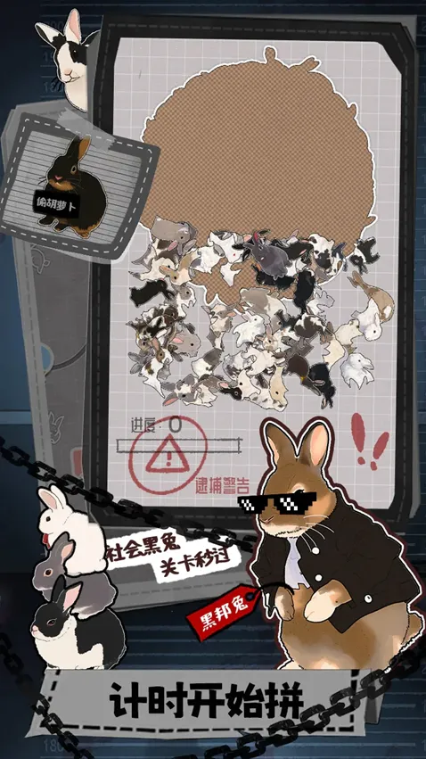 6、最终挑战“计时开始拼”,面对大量混杂的兔子,需在限定时间内快速识别并拼出目标形象,考验速度与专注力。
