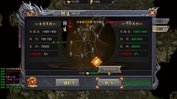 5、使用元宝可以提升转生等级获得额外的属性值。