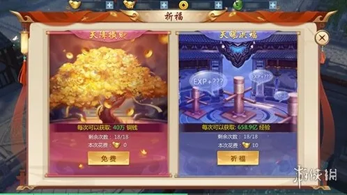 玩家每日可以消耗元宝进行10次经验祈福,快速获得大量经验,VIP玩家可以获得更多购买次数。