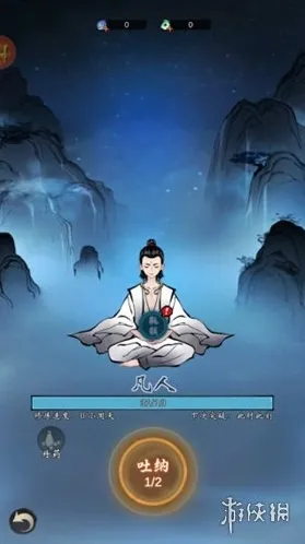 1、进入游戏,水墨画风真实展现,进入洞府,开始修炼,开始练习吐纳,一呼一吸吐故纳新。