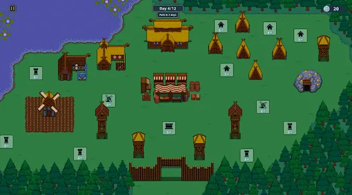 维京英雄是一款 在昼夜循环中紧密结合的像素风游戏。你扮演一位维京部落首领,在清晰的昼夜节奏中完成两项核心任务,白天,像一个即时战略游戏,你需要指挥村民收集资源、建造并升级各类建筑,为防御做准备。夜晚,则切换至塔防模式,你需要合理部署白天训练出的士兵和建造的防御塔,抵御如潮水般袭来的怪物。