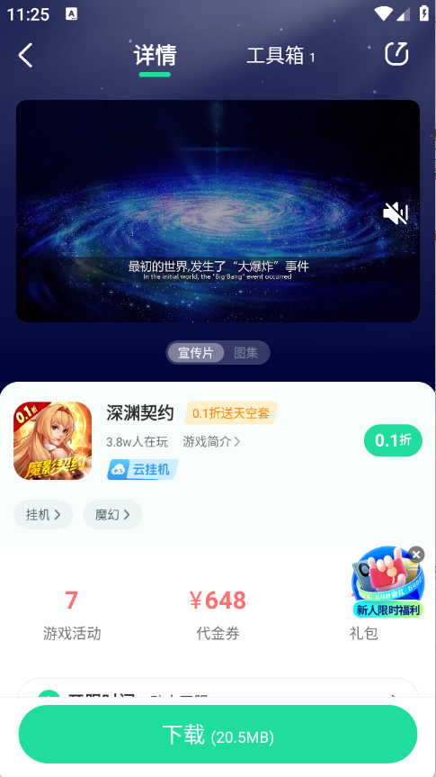 《零壹游戏盒》是专治游戏荒的电子急救箱。小编亲测过它的五分钟极速下载功能,速度快到连’正在加载’的进度条都来不及表演它的祖传动画,眨眼间就能把热门新游塞进手机里。心动的网友赶紧下载体验起来吧!