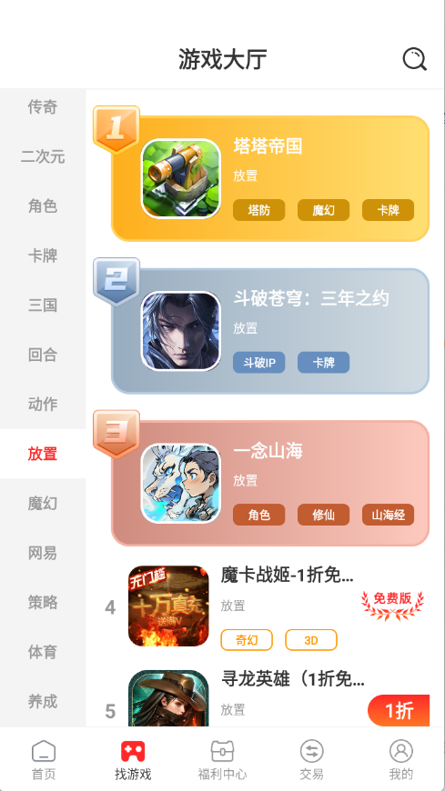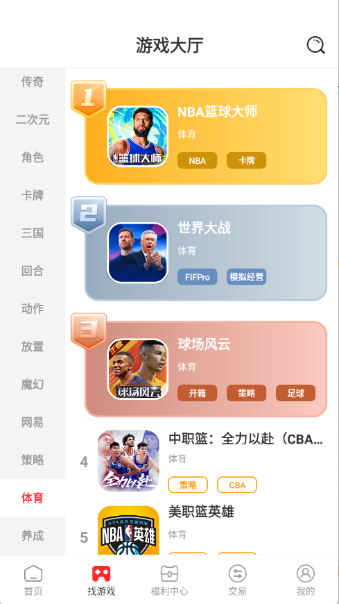 3、排行榜根据当前热度将游戏进行排序。