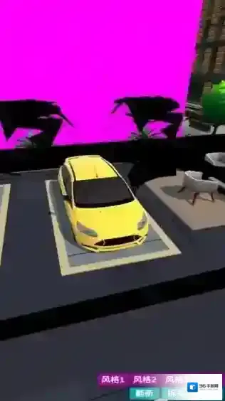 1、有黄色汽车、“风格1-4”“翻新”“拆车”“挖矿”等功能按钮,属于汽车改装、经营玩法,玩家可对车辆进行风格更换、翻新等操作,常见于休闲模拟品类。