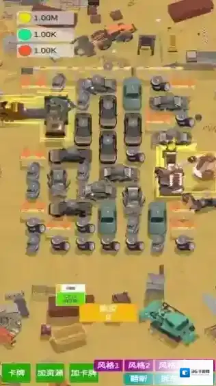 2、呈现车辆拆解、组装场景,有资源数值、功能按钮,玩法围绕回收、拆解、管理车辆部件,经营工厂,属于策略经营,玩家可体验废品回收、工厂运营的乐趣。