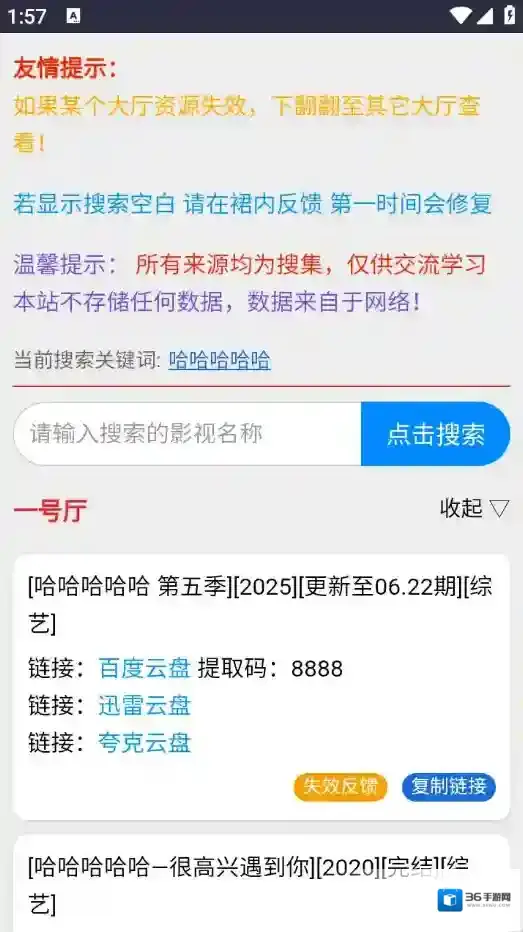 3、用户直接在网站上搜索关键词,即可快速显示各个网盘的影视资源下载链接和提取码,操作方便快捷。</p