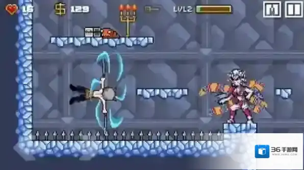 1、闯关战斗操作:操控角色在关卡中与怪物展开格斗,通过按键进行攻击、跳跃与防御,躲避陷阱并击败了所有敌人,完成关卡的挑战。