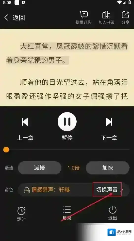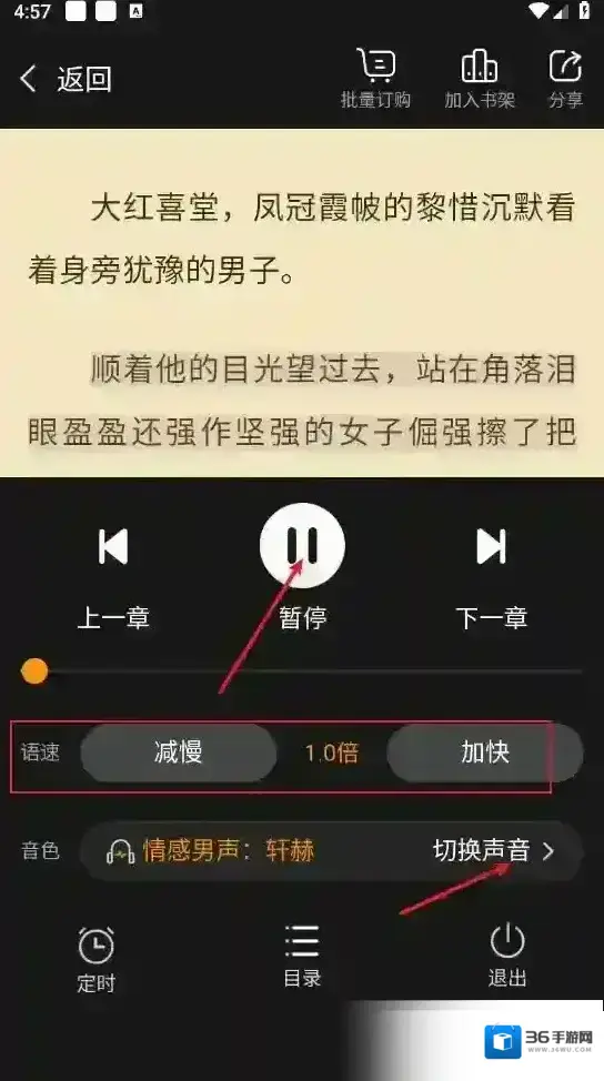 5、进入后即可免费开启听书了,还可以进行调整语速、定时等。