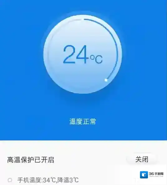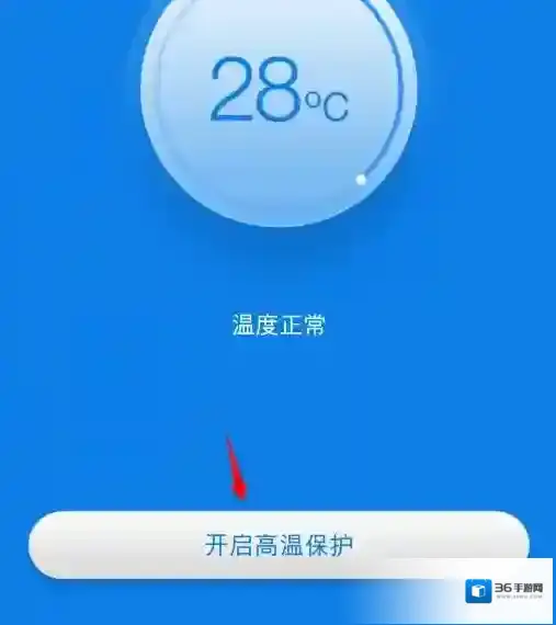 2、在主界面中可以看到鲁大师降温神器显示的当前手机温度有多少,点击“开启高温保护”,如下图。
