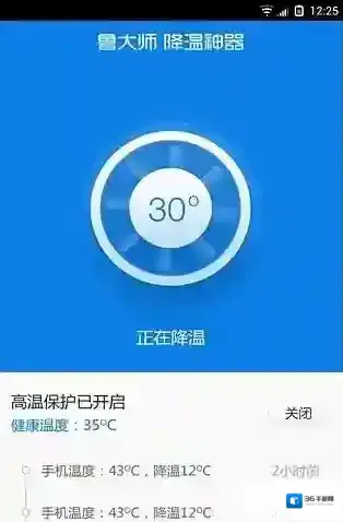 3、点击以后,会发现当前手机温度显示的数值下降了一些,如下图。